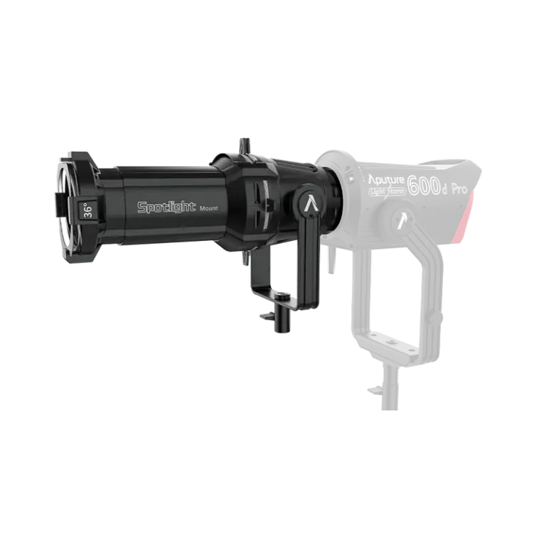 Aputure Spotlight Mount 36° — оптическая насадка с углом 36°, предназначенная для формирования чёткого направленного светового пучка с резкими границами. Используется с LED-источниками Aputure через крепление Bowens и позволяет точно контролировать форму светового пятна. Совместима с комплектными гобо и рамкой для масок, устанавливается на источник вместо рефлектора и применяется для работы с акцентным и проекционным светом.