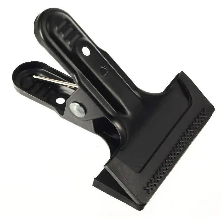 пружинный зажим для фиксации фонов, тканей и элементов сет-дизайна на съёмочной площадке. Используется для крепления материалов к стойкам, перекладинам и конструкциям.