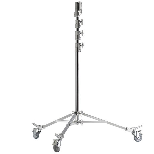 Kupo 330M High Baby Roller Stand — осветительная стойка типа High Baby Roller с колёсной базой и верхним креплением Baby 16 мм (5/8″). Имеет телескопическую колонну с максимальной рабочей высотой до 3,3 м, оснащена колёсами с фиксацией для перемещения стойки с установленным оборудованием. Рассчитана на устойчивую установку приборов и аксессуаров с креплением Baby.