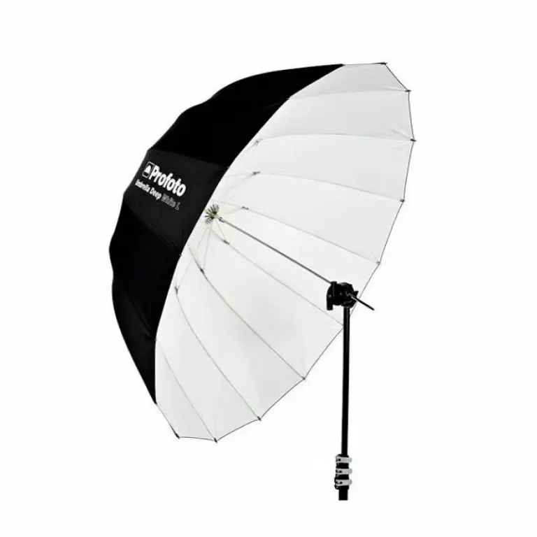 Umbrella Deep White L 130 cm — глубокий белый зонт диаметром 130 см, используемый для отражённого света. Белая внутренняя поверхность формирует мягкое, равномерное освещение с плавным распределением света и меньшим контрастом по сравнению с серебряными зонтами.